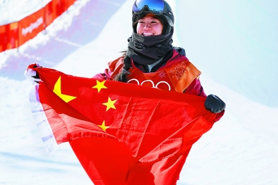 今天上午,中国女子单板滑雪U型场地技巧运动员、2009年世锦赛冠军刘佳宇,凭借第二滑89.75分夺得银牌,这是中国代表团平昌冬奥会的首枚奖牌,也是中国单板滑雪在冬奥会上取得的最好成绩。本报记者 刘平 摄 J163