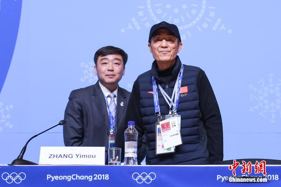 2月24日,2022北京冬奥会主题发布会在韩国平昌冬奥会主新闻中心举行。北京冬奥组委新闻宣传部部长常宇介绍2022北京冬奥会各项筹备情况,平昌冬奥会闭幕式“北京八分钟”总导演张艺谋介绍演出特点及准备情况。张艺谋透露将有人工智能和演员一起参与表演,并通过互联网和普通中国人互动。 中新社记者 崔楠 摄