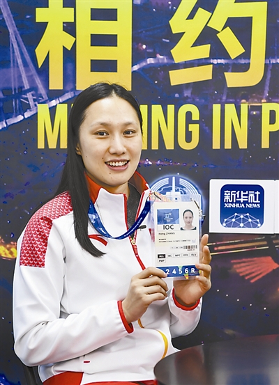 2月25日,张虹展示平昌冬奥会国际奥委会委员证件。 新华社记者 李俊东 摄