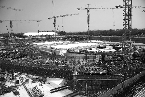 北京晨报记者从施工现场了解到,国家速滑馆将于6月“跃出”地面,年底完成钢环梁和索网结构的施工、外维护结构的施工。明年6月完成玻璃幕墙的施工,明年年底完工。