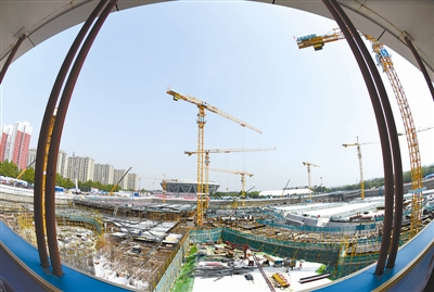5月9日,位于奥林匹克森林公园西侧的北京冬奥会场馆国家速滑馆建设工地树立工程完工倒计时牌。目前,工程已全面进入地下施工阶段,场馆将于2020年达到测试赛要求。这是5月9日拍摄的国家速滑馆施工现场。 新华社记者 罗晓光 摄