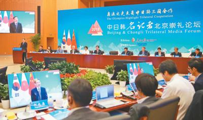 以“奥运之光点亮中日韩三国合作”为主题的2018中日韩名记者北京崇礼论坛5月18日在北京举行。来自中国、日本、韩国20多家主流媒体的代表及国际组织和体育界的嘉宾110余人参加论坛,探讨合作发展新亮点。本版特此摘发论坛开幕式上的嘉宾发言。