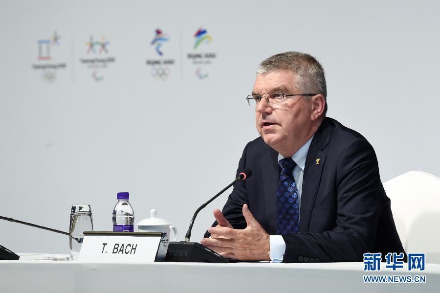 ↑6月5日,国际奥委会平昌冬奥会冬残奥会总结会战略会议闭幕并举行新闻发布会,国际奥委会主席巴赫在新闻发布会上。 新华社记者鞠焕宗摄