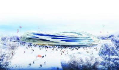 今年6月底,国家速滑馆(“冰丝带”)完成全部地下结构施工,上图为效果图。 北京冬奥组委供图