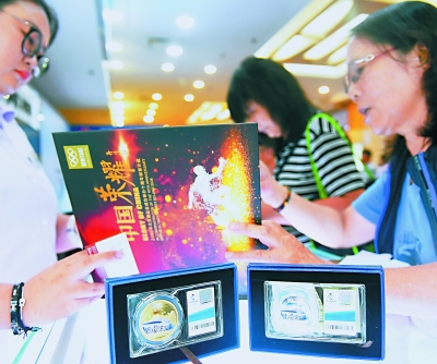 今天,王府井工美大厦冬奥特许商品专卖店一开门,消费者便将柜台挤得水泄不通。北京冬奥组委特别推出的9款纪念北京2008年奥运会成功举办十周年限量版特许商品上市首发。本次销售的纪念版特许商品共9款,包括“10周年纪念”徽章限量发售1000枚,“双奥之城”徽章限量发售5000枚,纯银纪念章和铜镀金纪念章各限量发售2022枚,笔记本套装限量发售3000套,北京奥运会十周年主题纪念封发行量20000个,另外还有2本纪念邮册分别名为“中国荣耀”、“精彩北京—北京奥运10周年”,1套“世界,因梦想而伟大”纪念邮折,供消费者和集邮爱好者收藏。