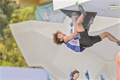 日本的绪方良行获得攀石赛第一名。