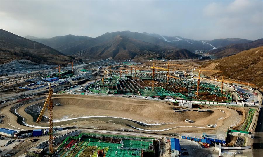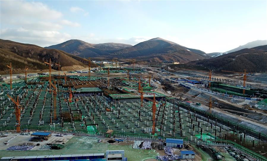 ↑这是12月19日拍摄的2022年冬奥会张家口赛区配套项目——崇礼太子城小镇建设工地。 新华社记者杨世尧摄