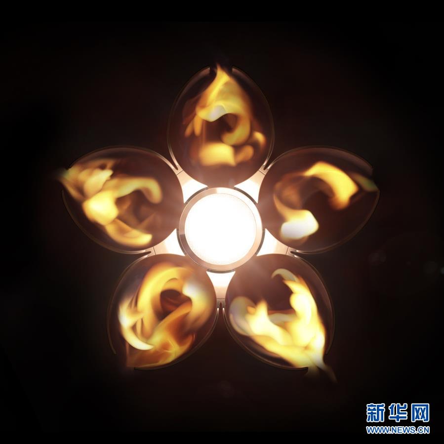 3月20日,东京奥组委在日本东京揭晓了2020年东京奥运会火炬样式。东京奥运火炬造型的灵感源自樱花,颜色为“樱花金”,火炬顶部设计成花瓣状,奥运火种将从五个“花瓣”及中央“花蕊”部分点燃。火炬整体长度为71厘米,总重量约1.2公斤。火炬主要材质为铝材,采用了使用在新干线制造中的铝挤压工艺。 图为东京奥组委提供的东京奥运会火炬点燃的示意图。 新华社发(东京奥组委提供)