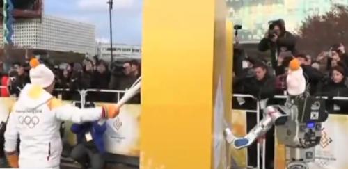 2017年12月11日,两名机器人火炬手在韩国“科技之都”大田市传递平昌冬奥会圣火,这也是奥运历史上,第一次由机器人进行火炬传递。