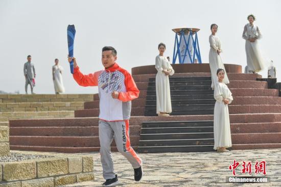 资料图:第二届全国青年运动会圣火在山西省运城市芮城县西侯度遗址圣火公园成功采集。中新社记者 武俊杰 摄