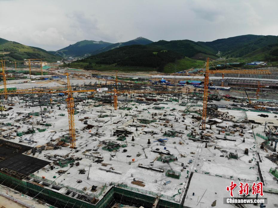 6月28日,航拍镜头下的河北张家口冬奥会太子城冰雪小镇项目。太子城冰雪小镇项目位于2022年冬奥会张家口赛区核心区,连接张家口赛区云顶和古杨树两个竞赛场馆群,建成后将承担赛时核心区配套保障功能,提供冬奥颁奖、贵宾接待、交通换乘、休闲娱乐等服务,赛后将成为一座国际化四季度假小镇。 中新社记者 杨艳敏 摄