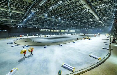 昨天,国家冰雪运动训练科研基地速滑馆整体亮相。长辛店“二七厂”的百年老厂房经过改造成为国家队备战冬奥会的训练“大本营”。本报记者 潘之望摄