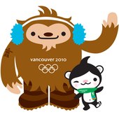 吉祥物是名叫米加的北极熊和名叫魁特奇的北美野人,米加是一只正在滑雪的北极熊,其创意来自不列颠哥伦比亚省原住民的民间传说。魁特奇是一个留着棕色胡须、戴着蓝色耳罩的北美野人,非常害羞、温柔,是太平洋西海岸当地原住民传说中受众人喜爱的人物。