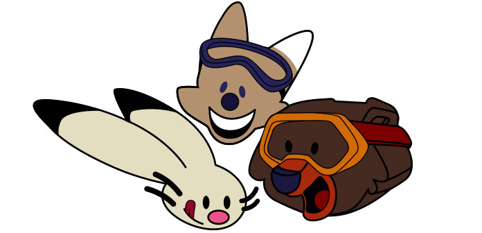 Powder(雪兔)、Copper(北美草原小狼)和Coal(美洲黑熊)