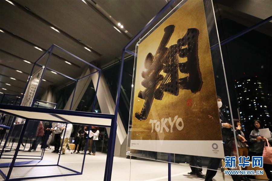 这是1月6日拍摄的书法海报作品。 当日,东京奥组委在日本东京正式公布了20幅奥运会和残奥会官方海报,其中包括书法、漫画、照片等多种作品。所有作品将从1月7日起在东京现代美术馆公开展出。 新华社记者 杜潇逸 摄