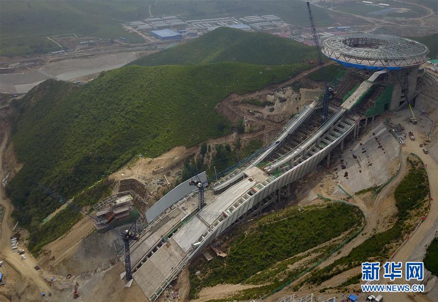 这是位于张家口赛区的国家跳台滑雪中心(7月30日无人机拍摄)。 在申冬奥成功五周年之际,记者来到北京、延庆和张家口三个赛区,探访处于建设改造冲刺阶段的冬奥场馆和设施,近距离了解2022北京冬奥会筹备情况。 新华社记者 张晨霖 摄
