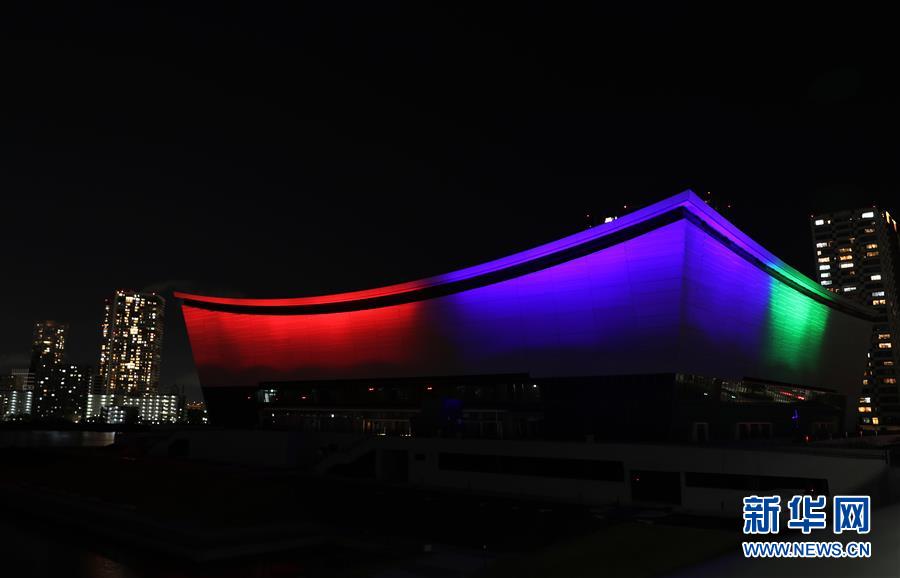 8月24日,东京残奥会轮椅篮球比赛场馆有明体育馆点亮灯光。新华社记者杜潇逸摄