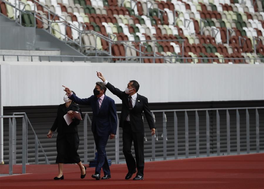 10月8日,世界田联主席塞巴斯蒂安·科(中)参观国立竞技场。 当日,世界田联主席塞巴斯蒂安·科在日本东京参观了将作为明年奥林匹克体育场的国立竞技场。 新华社/POOL/加藤一生