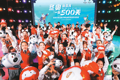 21日,吉林省速滑馆内彩旗招展、人声鼎沸,200余名冰雪健儿通过冰舞、速度滑冰、冰壶等形式多样的项目展示,共同庆祝北京冬奥会倒计时500天。