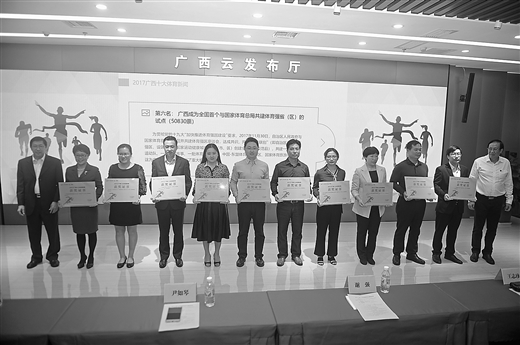 本报主办的2017年广西十大体育新闻的评选活动自2月2日启动以来,历时一个月,截至3月2日零时读者(观众)线上投票环节已经结束,有近300万人次访问了活动页面,近123万人次参与了投票。3月5日,本报在广西云发布厅举办颁奖仪式,给荣获2017年广西体育十大新闻的环广西公路自行车世界巡回赛等赛事组织者和个人颁了奖。