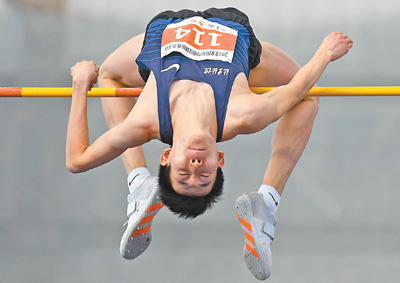3月24日,北京北控体彩队选手王宇在男子跳高决赛中,他以2米28的成绩获得冠军。新华社记者 张晨霖摄