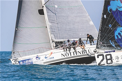 参赛帆船行驶在三亚—陵水—万宁赛段。 小新发
