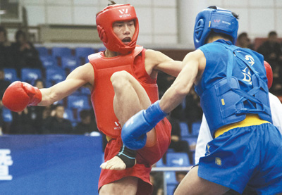 4月11日,运动员在比赛中。当日,为期5天的2018年全国男子武术散打锦标赛暨第十八届亚运会武术比赛选拔赛在河北保定拉开帷幕。本次比赛由国家体育总局武术运动管理中心、中国武术协会、河北省体育局主办。
