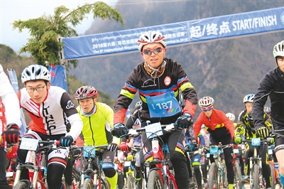5月1日,第六届环巴松措国际山地自行车越野竞速赛将在西藏林芝巴松措国家森林公园内举行。该赛赛道全程99公里,超九成为山地越野赛道,平均海拔超过3600米,是全国海拔最高的环湖自行车赛,共吸引138名多国自行车运动员赴藏参赛。图为参赛选手从起点出发。
