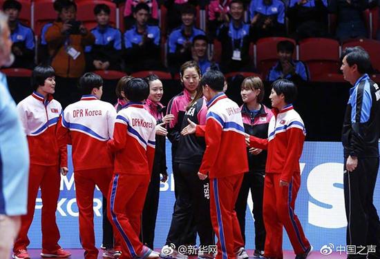 5月3日,朝韩两队原本应该在世乒赛的1/4决赛中一决高下,但她们却没有进行任何比赛,而是突然宣布组成朝韩联队,在晋级4强的同时至少确保一枚铜牌到手。这是朝韩自1991年以来再次联手组队参加世乒赛,那一次他们曾击败了邓亚萍领衔的中国队夺冠。