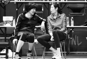 ■郎平与朱婷聊得甚欢。