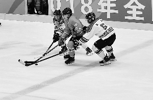 5月7日在2018全国冰球锦标赛男子A组第一阶段比赛中,重庆队以3比2战胜河北承德队。