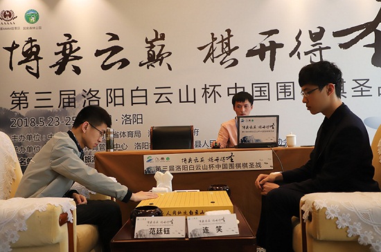 人民网洛阳5月23日电(管若寒)今天,第三届洛阳白云山杯中国围棋棋圣战半决赛在白云山景区战罢。檀啸不敌辜梓豪,连笑鏖战6小时半目胜范廷钰,挑战权决定战将于25日继续进行,连笑VS辜梓豪。