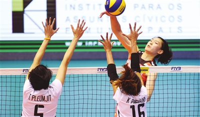 本报讯(记者 周芳明)昨天,2018世界女排联赛澳门站的比赛进入第二天的争夺。中国女排3:1战胜泰国女排,终结两连败,取得澳门站首胜。今晚中国女排将对阵已在本站取得两连胜的塞尔维亚女排。