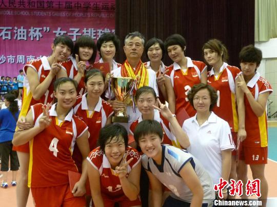 资料图。图为第十届全国中运会,包头一中女排赛夺冠合影。包头一中供图