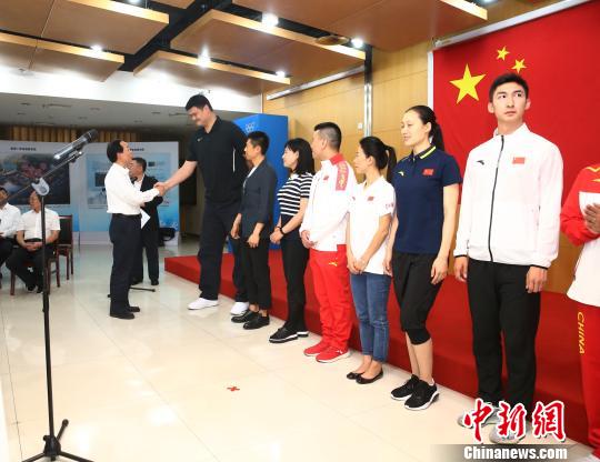 中国著名篮球运动员、中国篮协主席姚明当天结合自己的运动生涯,激励短道速滑队运动员、教练员牢记使命,敢于担当,化压力为动力,以良好的状态出现在2022年北京冬奥会赛场上。