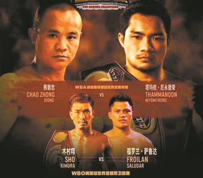广州日报讯 (全媒体记者 施绍宗) “盖世拳王·WBA世界拳王争霸赛”将于本月27日晚上在青岛举行,当晚有两场引人关注的世界拳王争霸赛上演,分别是中国传奇拳王、36岁的熊朝忠将第7次冲击世界金腰带,挑战现WBA迷你最轻量级世界拳王、泰国五星级全胜拳王尼永德荣,而战胜邹市明夺得现WBO蝇量级世界拳王并成功卫冕的日本拳手木村翔将迎来与4号挑战者福罗兰·萨鲁达的第二次卫冕战。