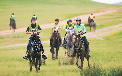 锡林浩特以大赛为契机,充分展示“中国马都·草原明珠”的独特魅力,将育马、养马、马文化旅游有机结合起来,推动以马为核心的文化旅游业快速发展,传承、传播草原特色马文化,提升“中国马都”知名度和美誉度。左图为马术大赛现场。
