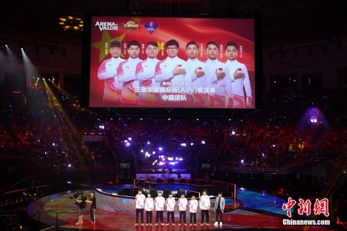 王者荣耀国际版《ArenaofValor》已经入选为雅加达亚运会表演项目,中国也是组建了一支电竞队伍远征雅加达。他们分别是老帅、Alan、ku、初冬、Mc、九月以及教练奶茶。中新网记者 翟璐 摄