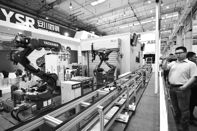 昨天,世界机器人大会上的工业机器人亮相。