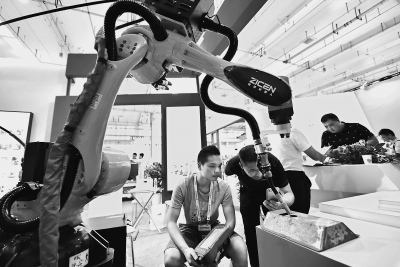 在一个个“秀技”的机器人不远处,一个展品看似普通、很难吸引普通市民的展台却引来不少专业观众驻足。
