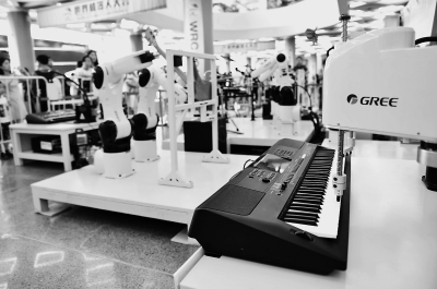 机器人乐团吸引参观者驻足。