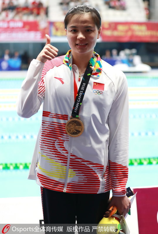 人民网北京8月20日电(李乃妍 实习生武帅男)北京时间昨日,2018年雅加达亚运会女子100米蛙泳决赛中,中国选手史婧琳游出了1分07秒36的成绩,从而夺得铜牌。另一位中国选手于静瑶以1分07秒44的成绩位列第四位。日本选手铃木聪美凭借1分06秒40的成绩破赛会纪录夺冠。(Osports全体育传媒专供人民体育 版权作品 严禁转载)
