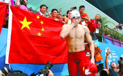 在雅加达亚运会男子200米自由泳决赛中,他以1分45秒43的成绩夺得冠军的同时,也成就了自己的泳坛“全满贯”纪录。