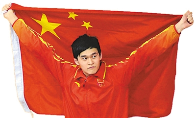 孙杨在广州亚运会男子1500米自由泳颁奖仪式上。