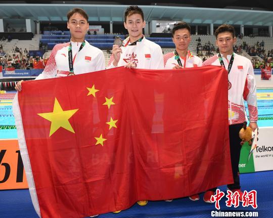 (雅加达亚运会)孙杨领衔中国队4x100米自由泳摘银:想和短距离高手过过招