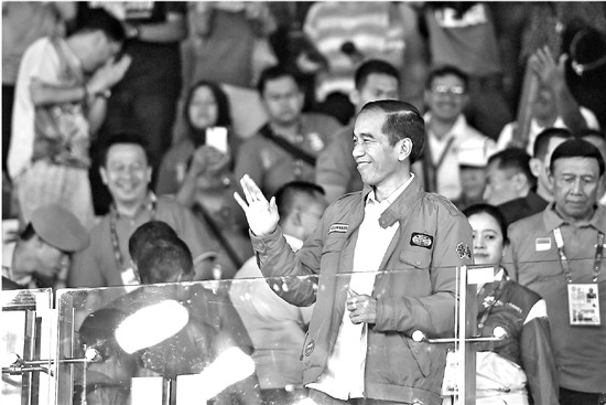 比赛的热烈气氛让钱报记者场外就开始感受到了。比赛是从雅加达时间18点(北京时间19点)开始的,但16:30时,观众已经在场外排起了长龙,一些外国媒体看到这样的阵势,也不禁驻足报道。赛前十几分钟,印尼总统佐科也轻装简行,出现在看台,瞬间引爆起第一轮欢呼。