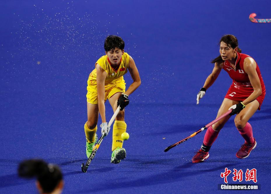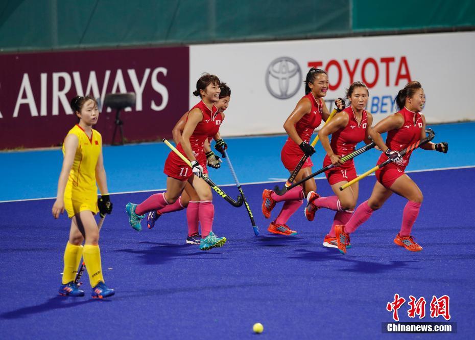当地时间8月25日,在雅加达亚运会女子曲棍球小组赛中,中国队2:4不敌日本队。图为日本队员庆祝进球。中新社记者 刘关关 摄