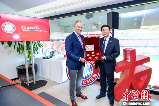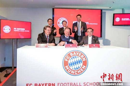 拜仁慕尼黑足球俱乐部官员和山西省体育代表团当日时间6日中午在安联球场举行签约仪式,共同宣布在山西省太原市组建拜仁慕尼黑太原足球学校。 山西省体育局提供 摄