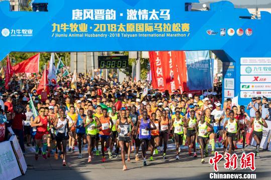 2018太原国际马拉松赛正式鸣枪开跑。 韦亮 摄