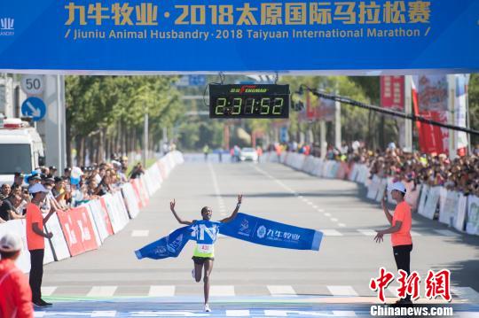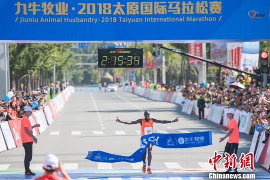 肯尼亚选手伊泽基尔·科姆波伊·欧姆勒以2小时15分36秒获得男子组冠军。 韦亮 摄